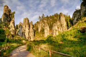 Adršpach is known for its unique sandstone rock formations and family-friendly hiking trails.